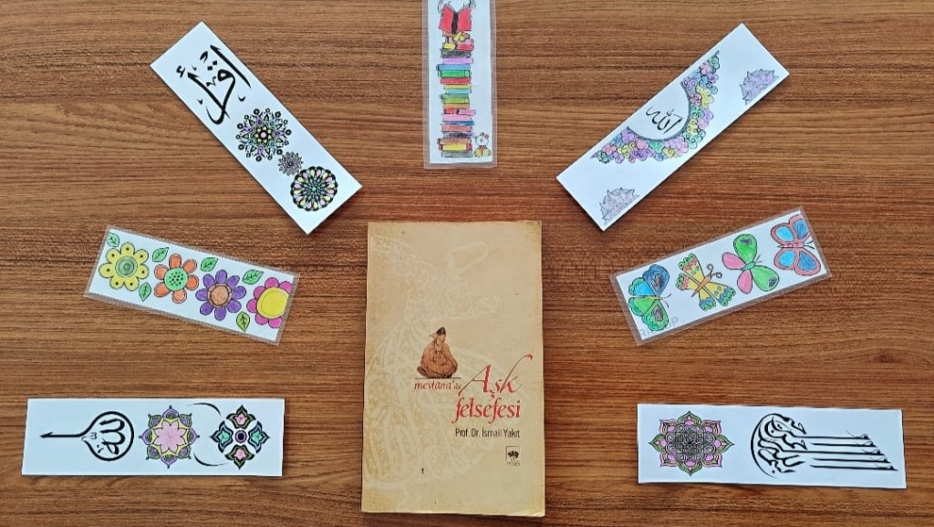 Din Kültürü ve Ahlak Bilgisi öğretmenimiz Sedanur SÜNGER ortaokul öğrencilerimizle beraber kitap ayraçları hazırladılar. Kitap okumanın önemi ve okurken dikkat edilmesi gerekenler hakkında konuşulduktan sonra öğrencilerle ayraç yapma etkinliğine geçildi. Her öğrencimizin kendi ayracı ve düzenli okuduğu kitabı olması konusunda anlaştık.